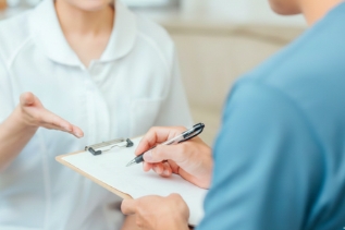 待合室にて問診票にご記入いただきます。 どのような症状が、いつからあるかなど、差し支えのない範囲で詳しくご記入いただけますと診察がスムーズです。